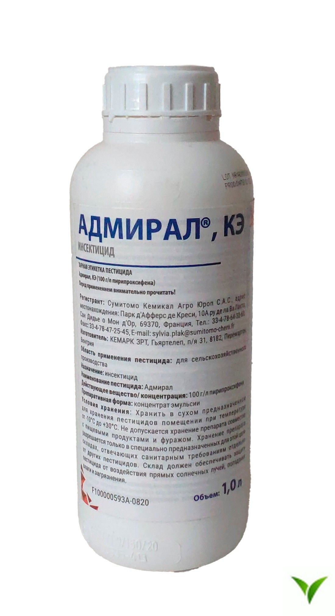 Адмирал ® – новый инсектицид с уникальным механизмом действия против колюще-сосущих вредителей. Адмирал – это синтетический аналог ювенильного гормона, нарушающего рост и развитие вредных насекомых. Препарат №1 в России для борьбы с калифорнийской щитовкой и тепличной белокрылкой.