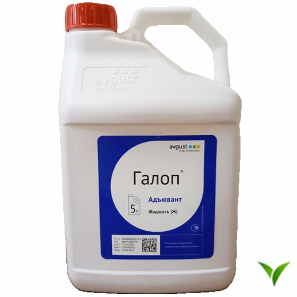 Кроме снижения поверхностного натяжения и увеличения площади соприкосновения рабочего раствора с поверхностью растений, этот адъювант препятствуют отскоку и стеканию капель рабочего раствора даже при вертикальном расположении листьев. Галоп повышает удерживаемость рабочего раствора на листьях, препятствует быстрому высыханию и кристаллизации действующих веществ препаратов-партнеров.