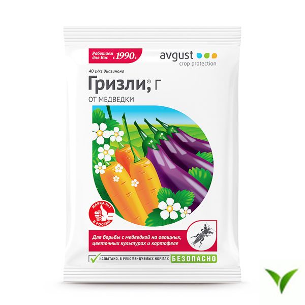 Инсектицид не опасен для почвенных бактерий. 100-граммовой упаковки Гризли, цена которой весьма доступна, хватит для обработки 50 квадратных метров.