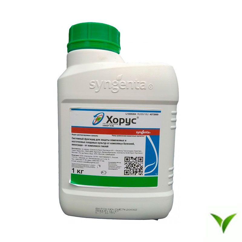 Применять Хорус необходимо профилактически или при первых проявлениях болезни. Первая обработка — в начале распускания листьев, последующие — через 10–14 дней. За сезон можно провести четыре обработки. Необходимо помнить, что период ожидания составляет 14 дней, то есть за две недели до сбора урожая нужно прекращать обработки.