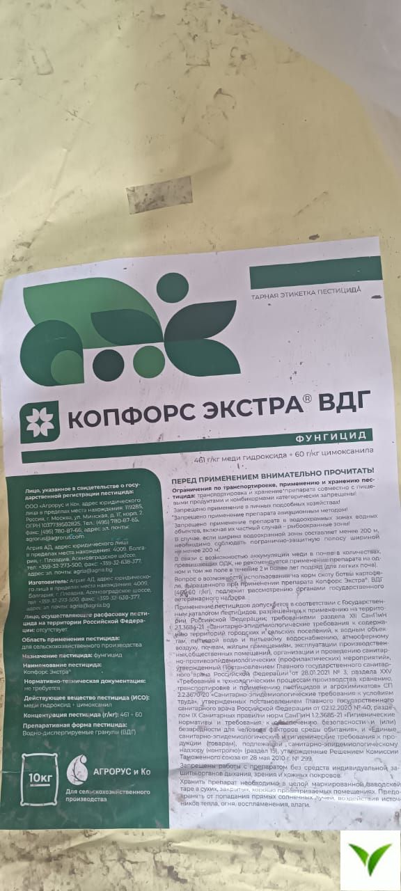 Период защитного действия: Копфорс Экстра®, ВДГ сохраняет своё действие на растениях в течение 7 — 14-ти дней. Длительность защитного действия зависит от метеорологических условий.