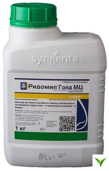 - Ридомил Голд МЦ эффективно подавляет патогены из класса Оомицеты (возбудителей фитофтороза, ложных мучнистых рос) и имеет дополнительный эффект против грибов родов Alternaria, Gloeosporium, Cladosporium и др.