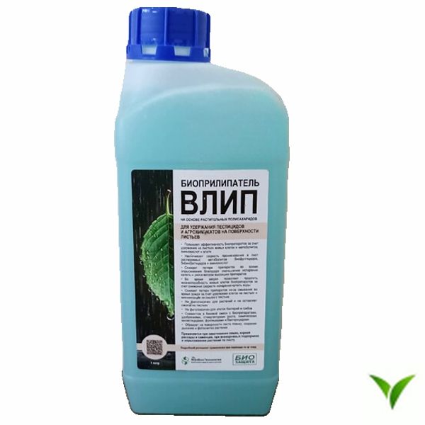 Биоприлипатель ВЛИП для удерживая пестицидов и агрохимикатов на поверхности листьев на основе растительных полисахаридов. Влип образует на поверхности листа пленку, удерживая пестициды и агрохимикаты на поверхности листьев, при этом сохраняя дыхание и фотосинтез растения.